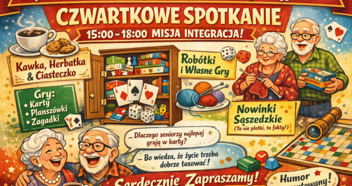 A jeżeli ktoś nie czuje powołania do gier, robótek ani krzyżowania szpad na planszy — zawsze zostaje kreatywna wymiana nowinek sąsiedzkich. Pamiętajmy: nowinki to nie plotki! Plotki mają krótsze nogi, a nowinki poruszają się dumnie wyprostowane.