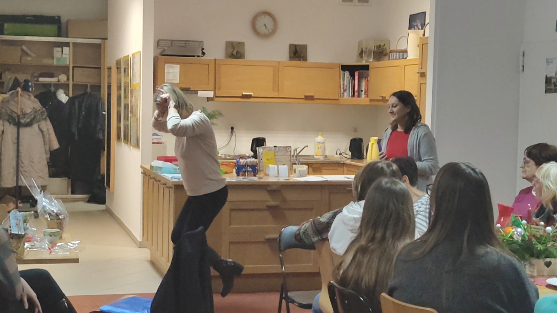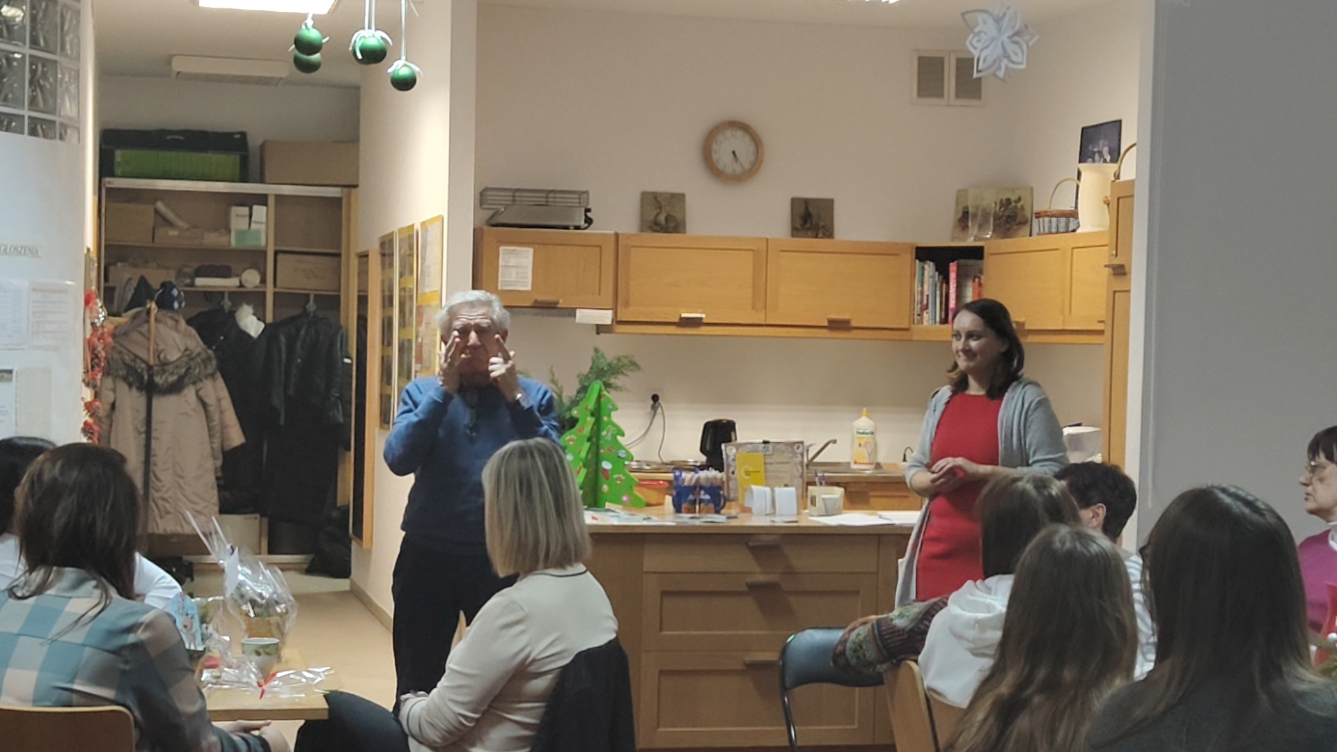A potem nadeszła runda finałowa: kalambury! Pierwsza wystąpiła pani Łucja, prezes stowarzyszenia, i tak zobrazowała przysłowie, że nawet gdyby ktoś zobaczył je po raz pierwszy w życiu, i tak krzyknąłby: „Aha! Już wiem!”. Potem zaczęła się prawdziwa kanonada. Odpowiedzi padały szybciej niż śrubki toczą się po warsztacie — aż trudno było nadążyć, śmiechu było tyle, że Mikołaj mógłby zrezygnować z sań i polecieć na nim w powietrzu.