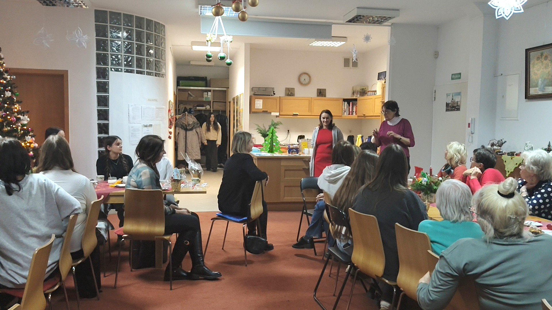 Ach, cóż to były za Mikołajki w naszym Świerczewskim Kręgu! Już od progu czuć było, że tego dnia ani seniorzy, ani młodzież z Zespołu Szkół Mechanicznych im. KEN nie zamierzają być grzeczni — najwyżej grzecznie rozrabiać. Nad całością czuwała pani Natalia, która prowadziła zabawę z wdziękiem, energią i (jak krąży plotka) planem zdominowania świata quizami.